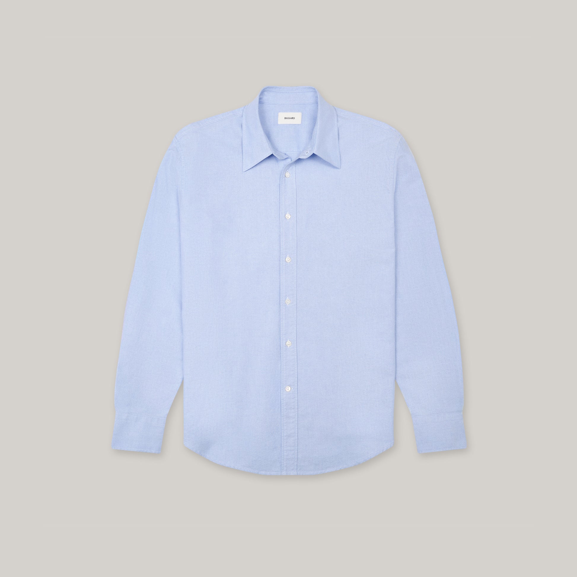 We fastened it with a custom oversized, double white mother-of-pearl button substantial enough to name the shirt after. Lastly, we cut it using mid-weight Japanese oxford cloth with a hand that feels soft and broken in, but still retains the structure of a crisp shirt.
